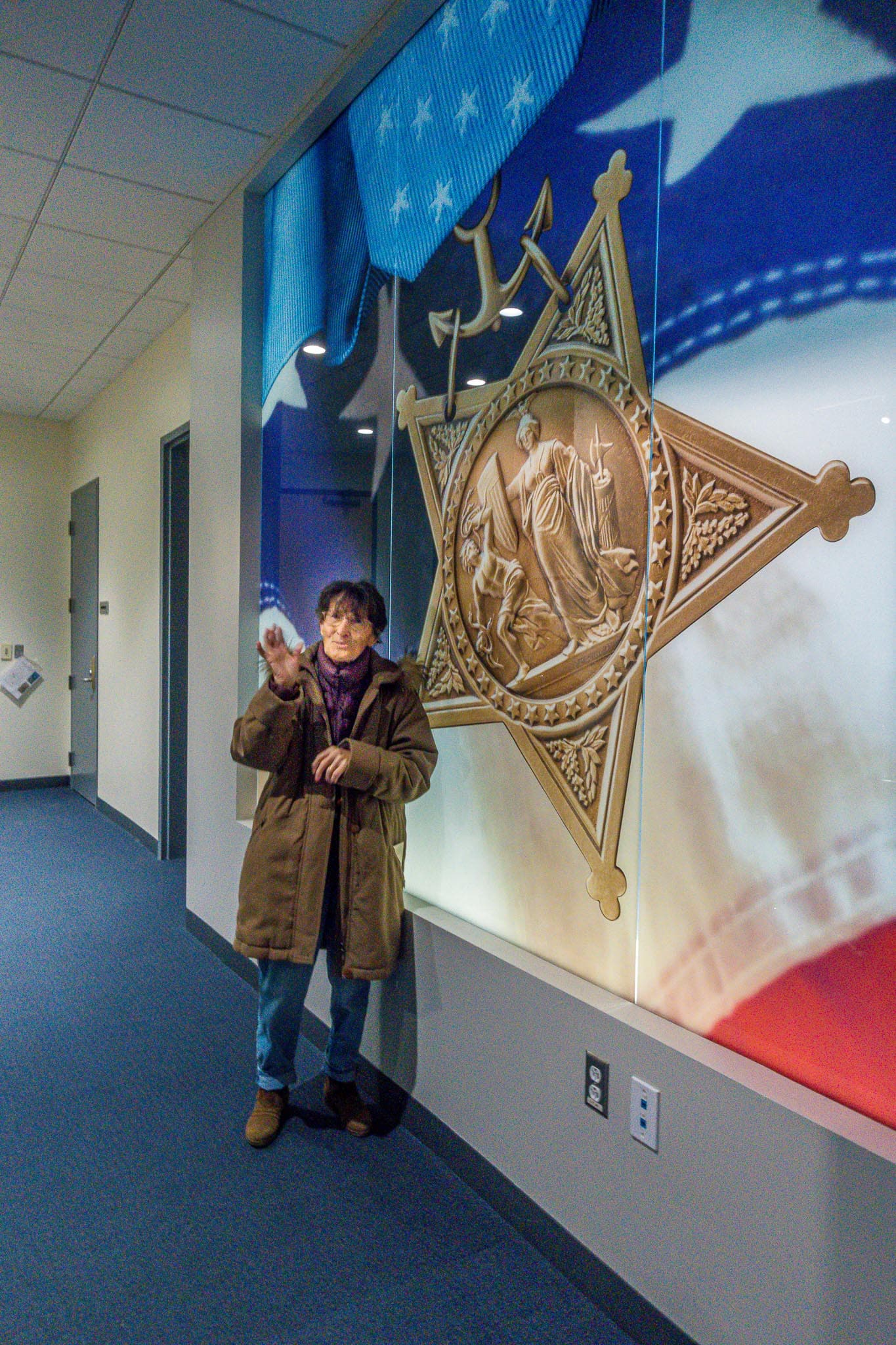 Finally, I took her to the ticket counter at the Medal of Honor theater, where I showe her a photo I had taken of the medallion for the museum in 2016.